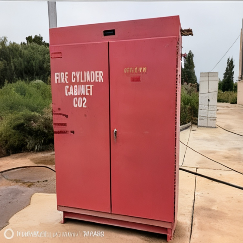Пожарная система: CO₂ шкаф, контроллер, датчики пламени, температуры и газа, сигнализация.